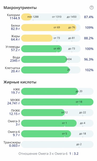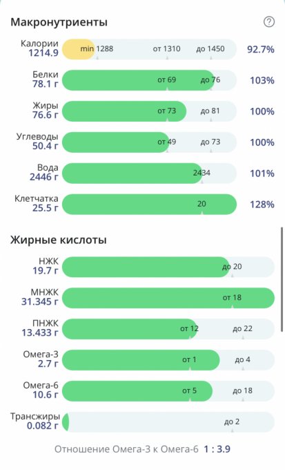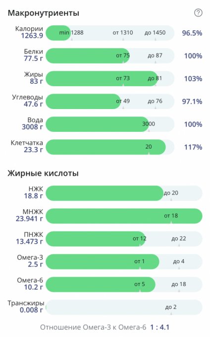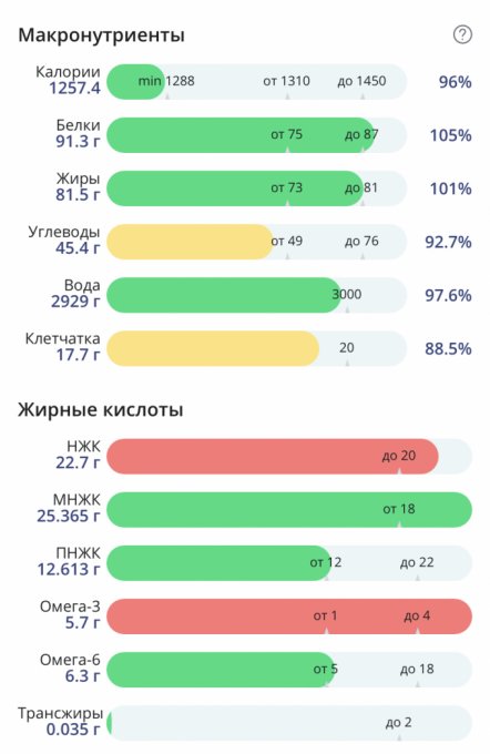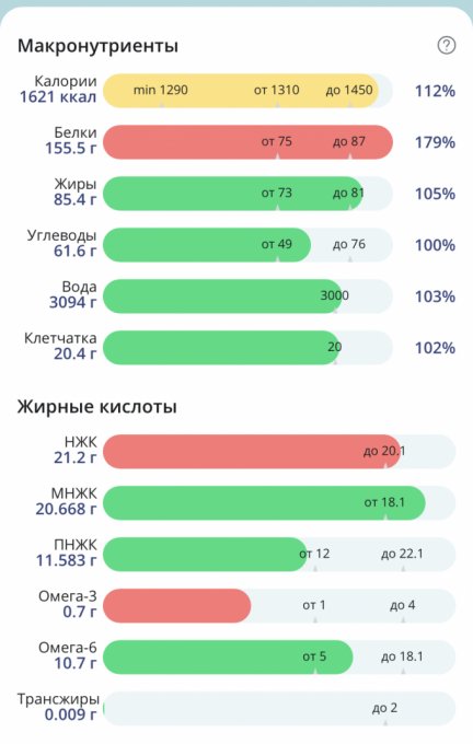 | Итого за день | 1134 | 500 | 28 | 39 | 5 |