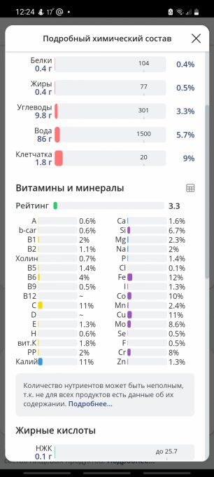 | Кол-во | Калории | Белки | Жиры | Углеводы | |