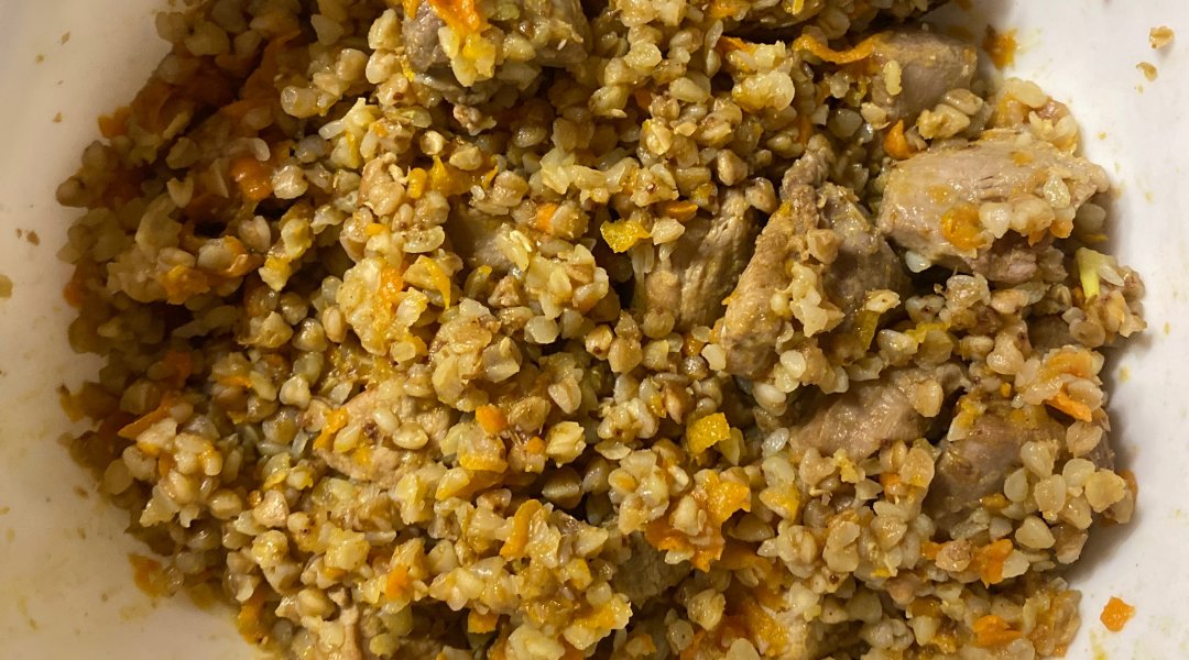 3.2. Влить горячую воду в сковороду; перемешать и накрыть