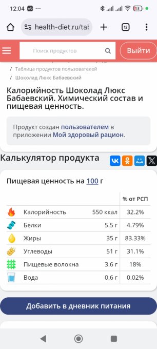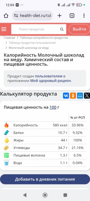 сьесть, занесла в рацион, посмотрела на полоску с жирами и