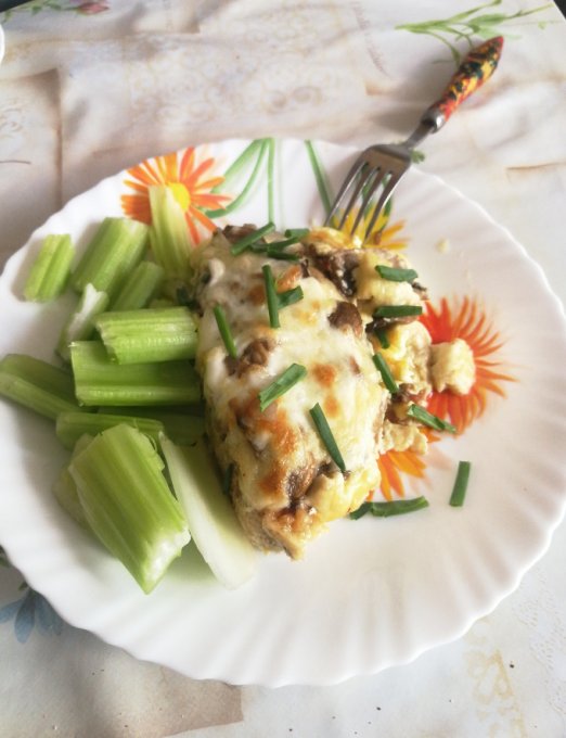 | Нерка под шубкой из сливочно-сырного соуса с шампиньонами |