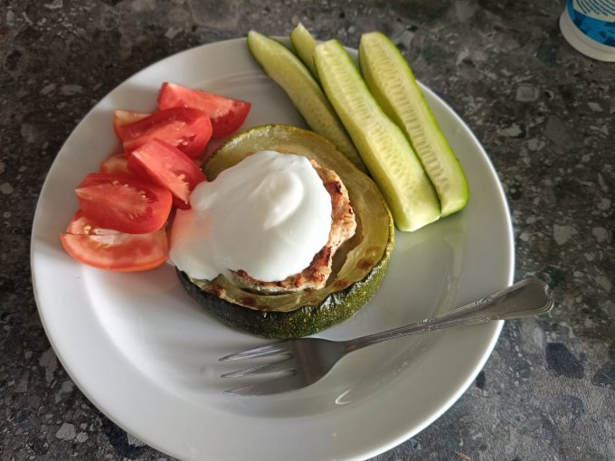 | Кабачки фаршированные ( курица + перловка) |