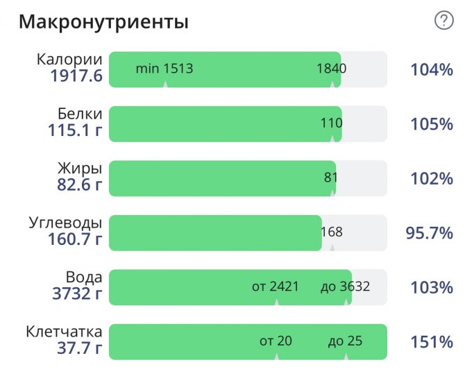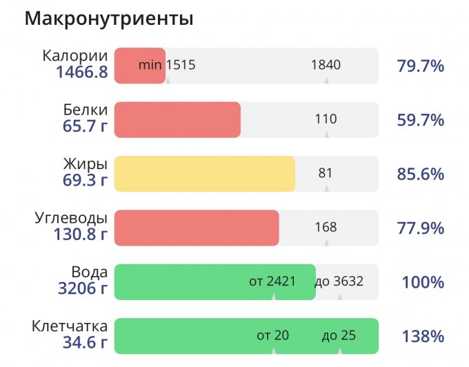 | Итого за день | 3670 | 1466 | 65 | 69 | 130 |