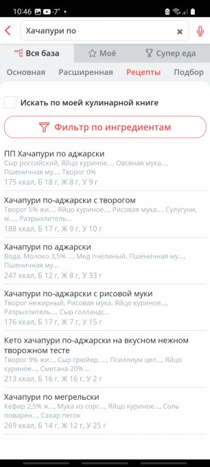 2) Нашла рецепт любимого хачапури из творога в базе "Рецепты".