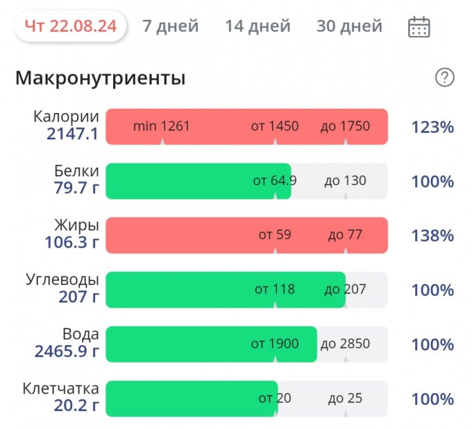| Итого за день | 3220 | 2147 | 79 | 106 | 207 |
