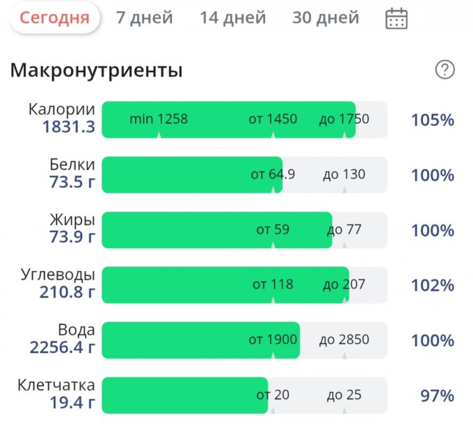 | Итого за день | 2729 | 1831 | 73 | 73 | 210 |