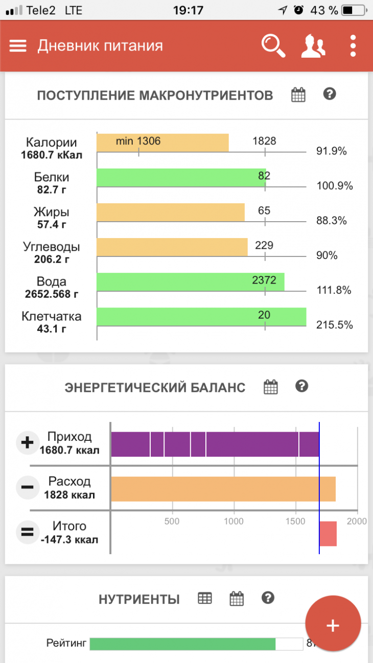 | Итого за день | 3824 | 2252 | 70 | 79 | 317 |