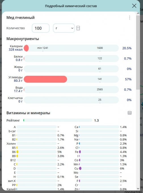 | Кол-во | Калории | Белки | Жиры | Углеводы | |