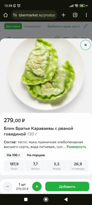 | Блины, обычные, замороженные, готовые к выпечке (включая блины из пахты) |