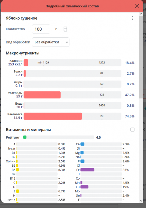 На сушила яблок, а вот не знаю по сколько их теперь кушать🤷♀️ мне от них клетчатка нужна. Кто вкурсе сколько её в 100 гр