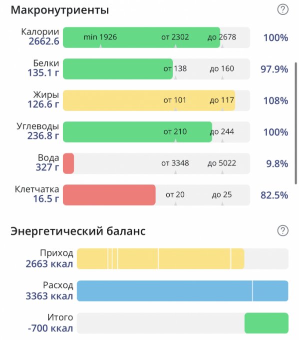 Получилось более калорийно, но все равно соблюдал дефицит