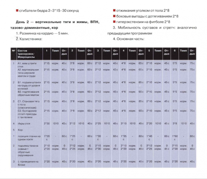 Итак, основной блок, 6 упражнений по 3 подхода каждый: