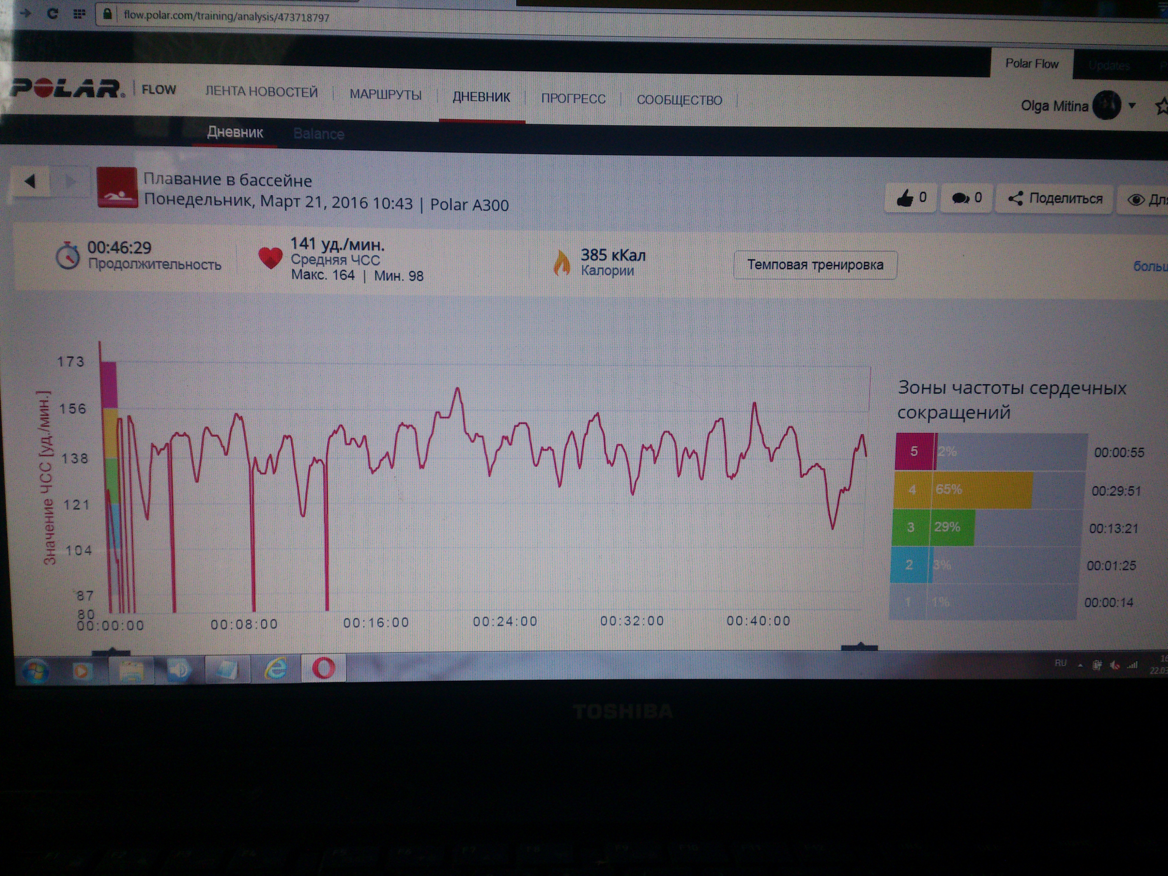 Ольга Митина, ого! с заходом в 5-ю зону! А стилем каким плаваете? Мне, думаю, слабо 45 минут в таком темпе плавать - 100 лет не плавала - руки, думаю, отвалятся быстрее, чем запыхаюсь. Когда-то очень давно я была очень даже водоплавающей...