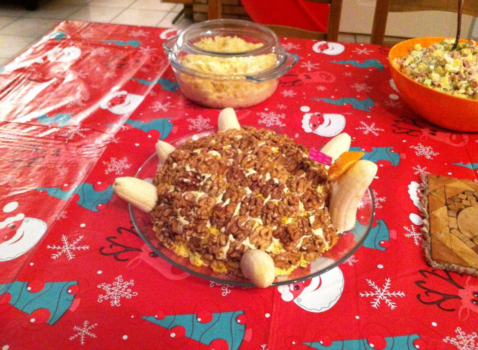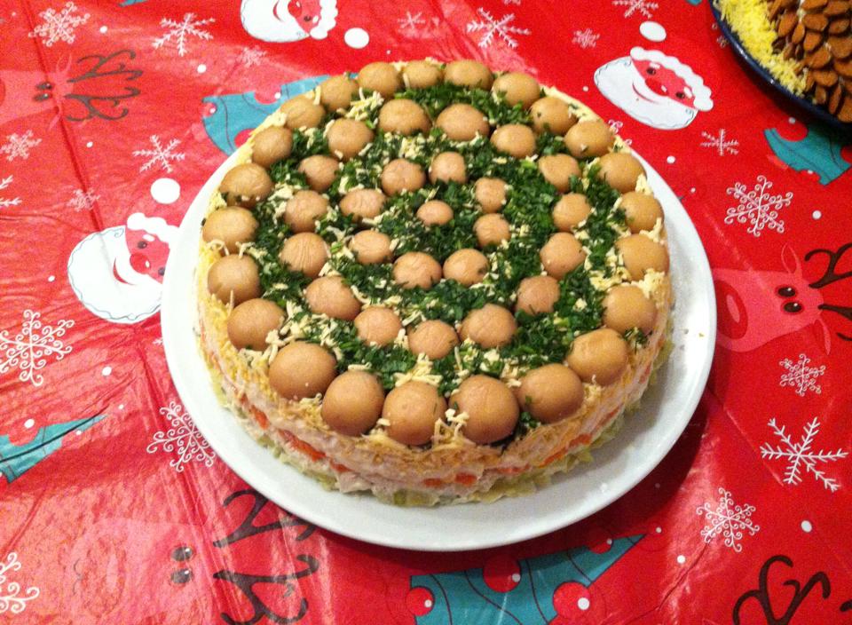 как во всех слоеных салатах. Потом в холодильник. Уже когда на стол