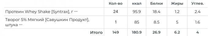 | Кол-во | Калории | Белки | Жиры | Углеводы | |