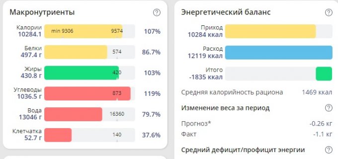 Чтобы увидеть отчеты по питанию и график веса, необходимо войти.
