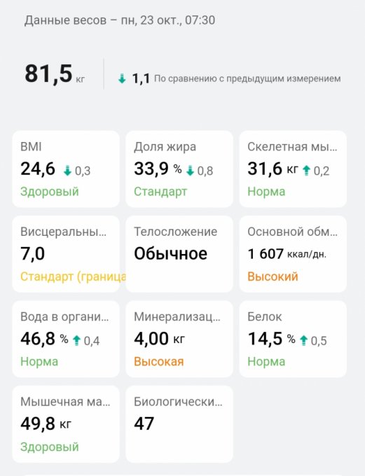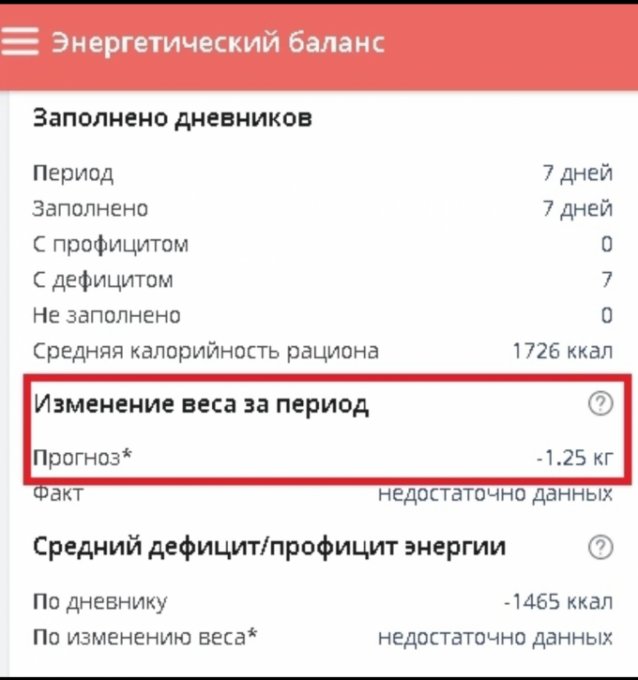 Фактически вес снизился чуть больше на 0,15кг, чем прогнозировал