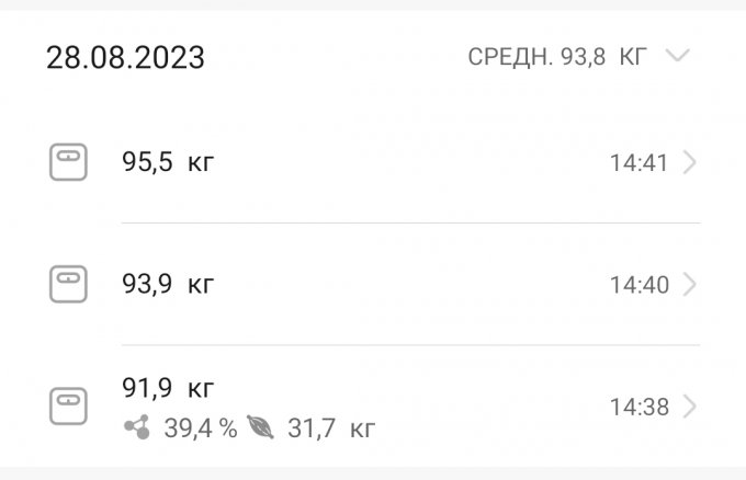 Поэтому первый вес фактический со всеми данными от умных весов, а