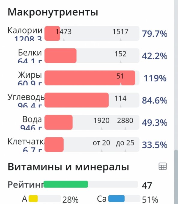 | Итого за день | 1434 | 1208 | 64 | 60 | 96 |