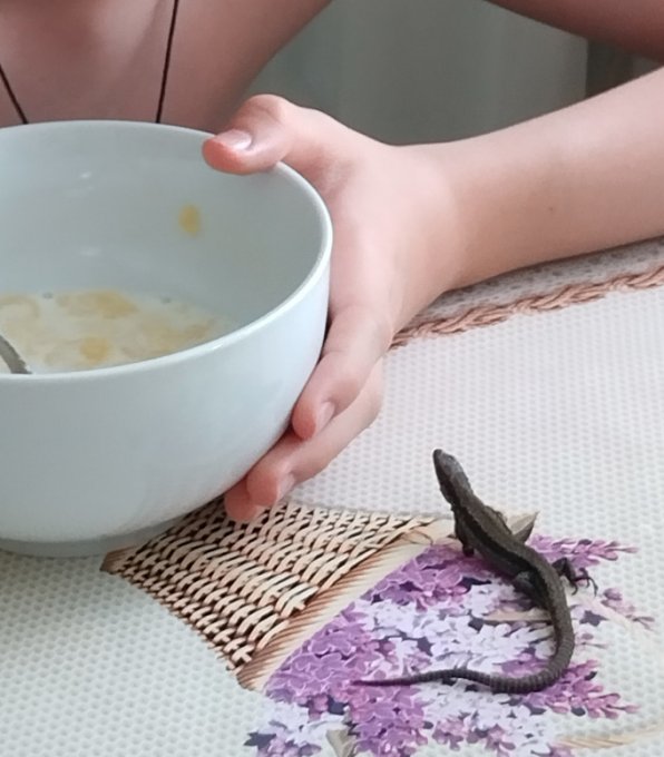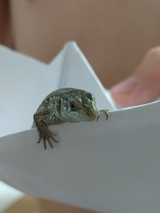 Он залетел к нам через чердак, папа его поймал. Потом мы его