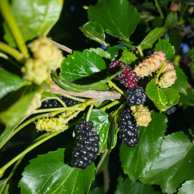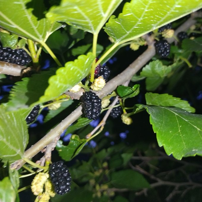 Живём мы в деревне. Посадил её ещё мой дед. Вот сегодня вечером, когда спала жара, мы вышли на огород, немного пропололи, а потом пошли полакомиться ягодками: малиной и шелковицей.