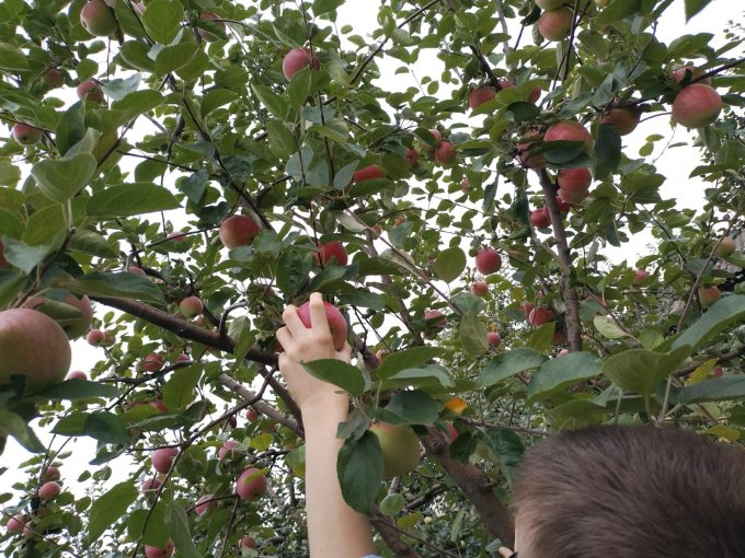 Это я рву 3 ящика среднеспелых яблок!