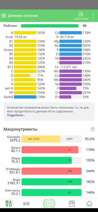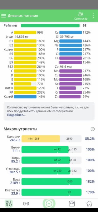 Вчера я писал о воде. МЗР насчитал мне слишком много. У меня не получилось выпить столько. Но мне подсказали и мама отредактировала нормы воды. Заодно она посмотрела в интернете сколько должно быть и других веществ и поменяла нормы. Теперь получается, что я переделаю сладкого, потому что у меня перебор углеводов, но! Я не ел сегодня тортов и конфет. Я ел кашу, яблоки, картошку, хлопья... Почему хоть перебор??? 😡