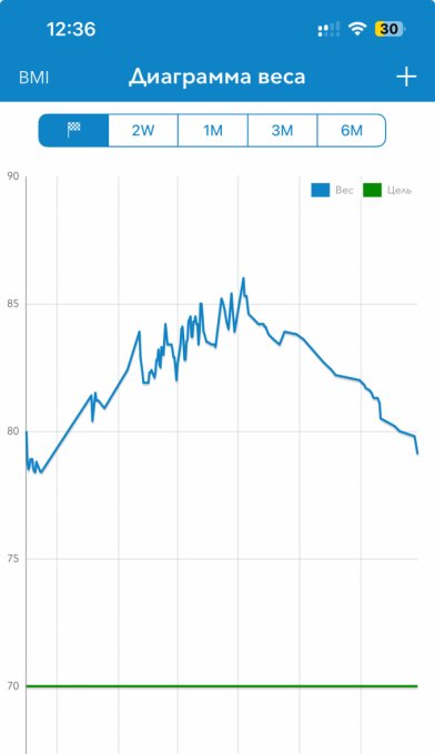 На фото диаграмма моего веса начиная с октября 22 года , тогда я