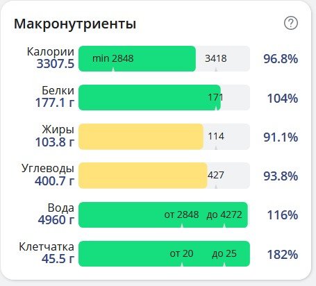 в день (кк, бжу, клетчатка) постоянно или плюс либо минус по