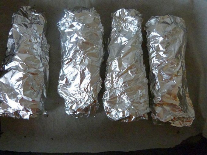 в фольге. Запекла их в духовке, для позднего ужина вполне пошло.