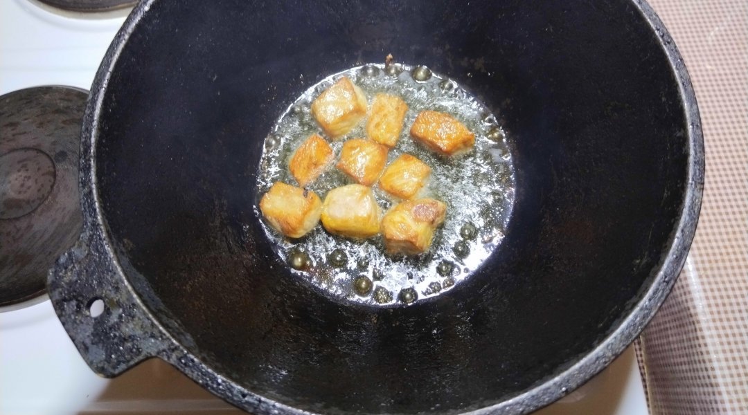 нарезанные куски свинины. Обжарить до корочки.
