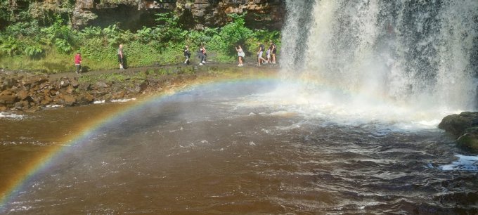 жарко и было в кайф. Когда выходишь из за водопада тебя ждёт радуга
