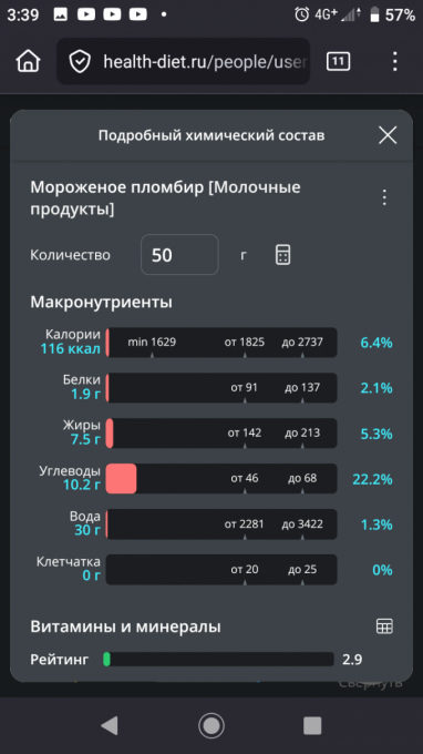 | Кол-во | Калории | Белки | Жиры | Углеводы | |