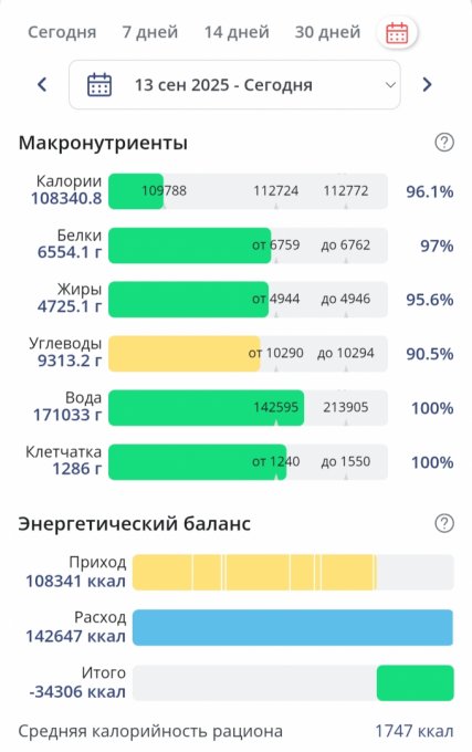 | Итого за день | 3024 | 1756 | 107 | 76 | 156 |