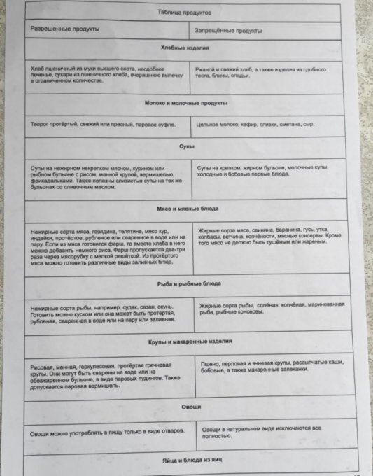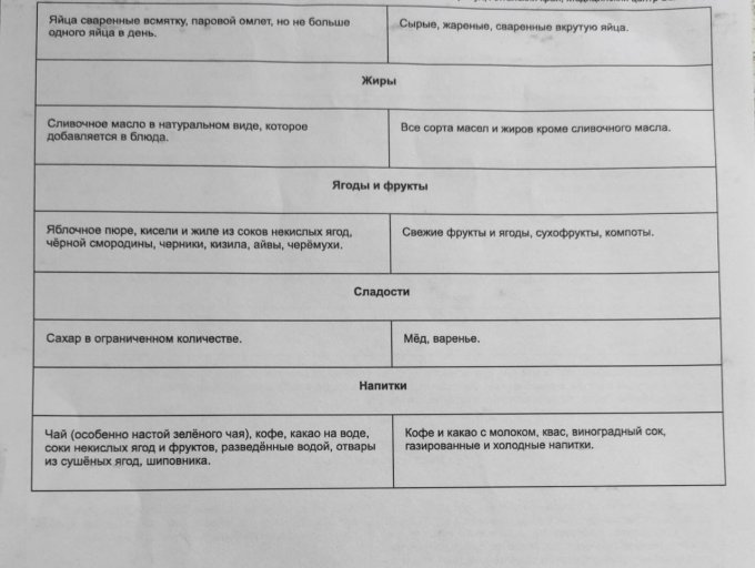 колбас, кисломолочных. яйца только всмятку и тд - я попыталась