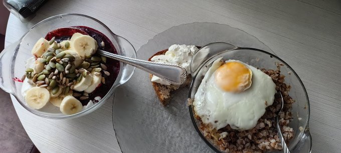 Очень насыщенный завтрак у меня получился. Почти на 800 калорий. И мне так нравится! Вкусно, сытно, надолго хватит сытости