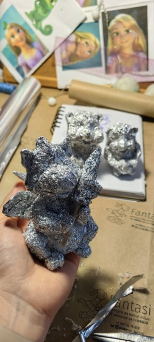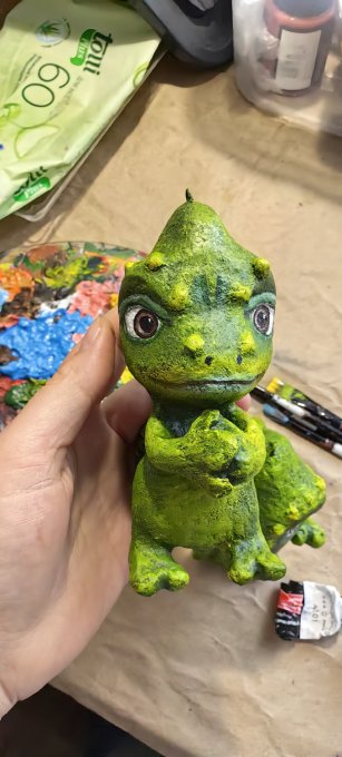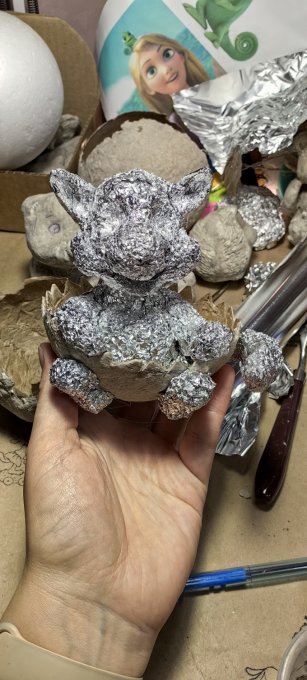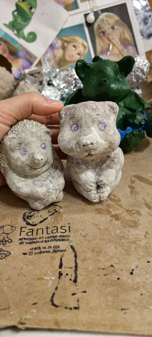 Продолжаю делать игрушки из папье-маше. Сегодня работала над дракончиком: сделала ему объёмную пушистую елочку, и на передних лапках пальчики вылепила и всякие пупырышки на коже. (На фото видно все этапы появления дракончика)
