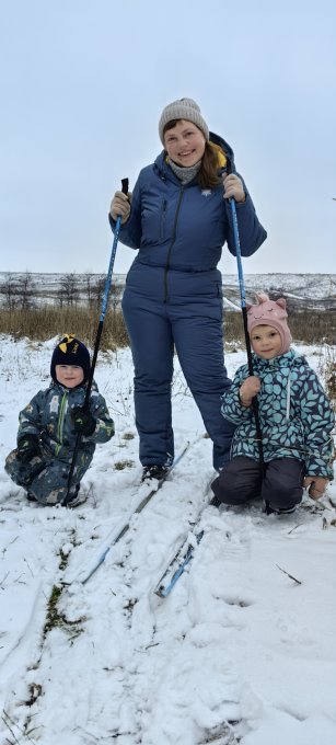 А сегодня на улице был снежный покров, сначала с детьми покатались с горки, в снежки, снеговик. А потом подумалось, дай как на лыжаххоть чуть чуть прокачусь... Я каталась, дети за мной бегали, весело)