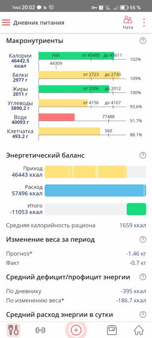 | Итого за день | 3200 | 1769 | 103 | 75 | 166 |