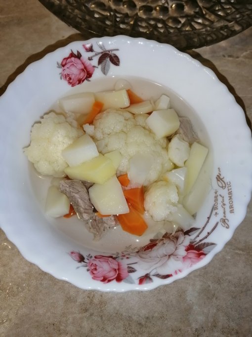 Отварить говядину, нарезать. Отдельно варить овощи, предварительно