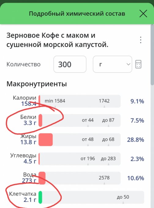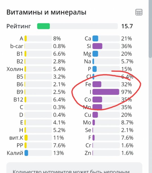 | Морская капуста (ламинария) сушеная (Варка без слива) | 1.5 г |