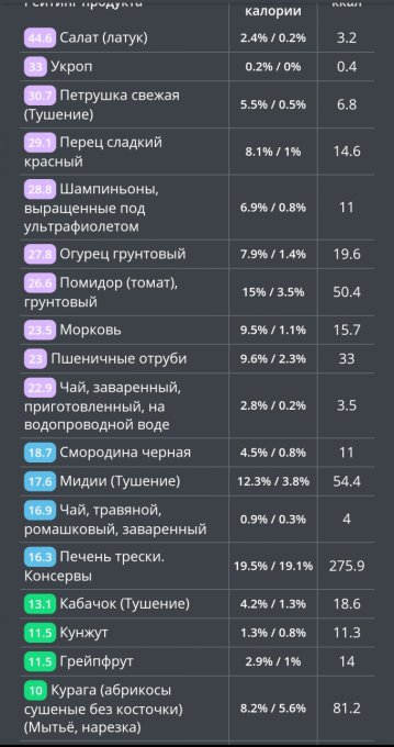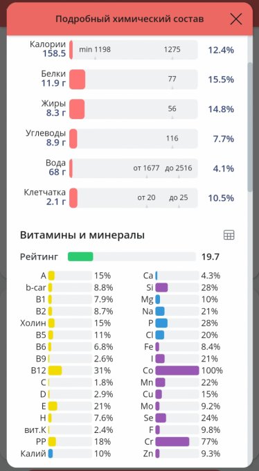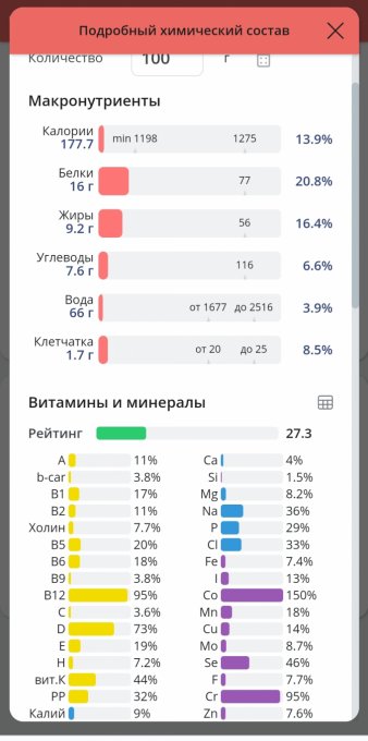 | Калории | 35.7 кКал | 2.12% | |