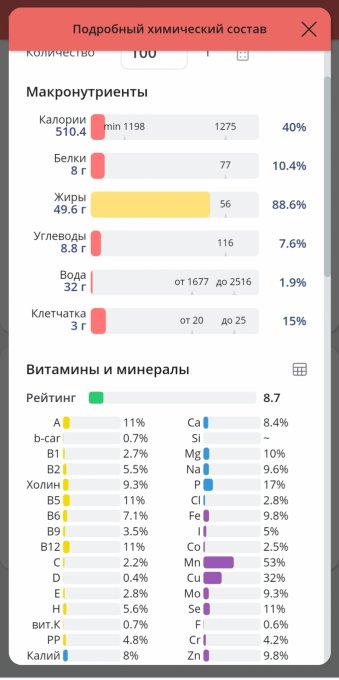 | Жиры | 0.4 г | 0.71% | |