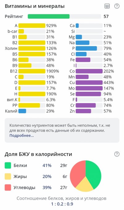 B1, половину B9 и полторы нормы D и почти двойную H.
