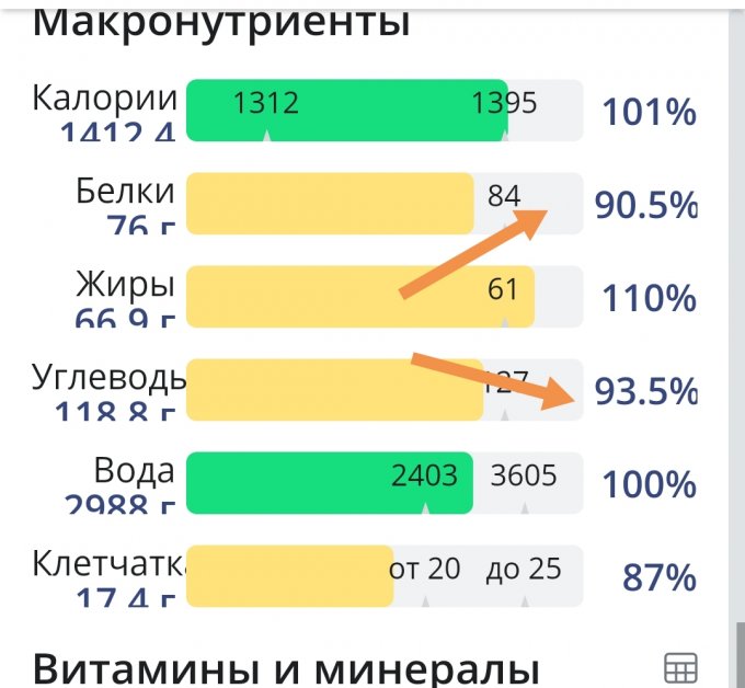 КБЖУ и стараюсь ей следовать и не нарушать. Дефицит в 500 калорий у