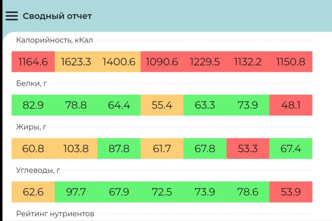 | Итого за день | 2729 | 1026 | 52 | 64 | 52 |