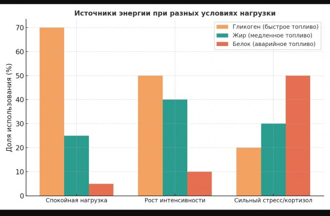 Хорошо, что на втором месте по потреблению энергии у организма в приоритете жировые запасы, а не белки. из мышц.