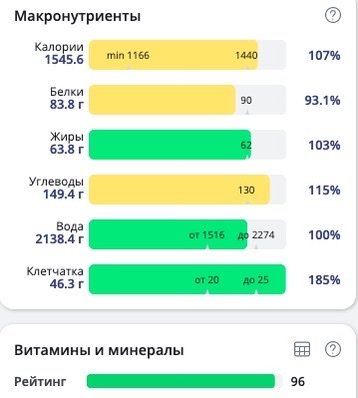 Евгений Михайлович, для себя не вижу необходимости тратить время. Если в какой-то день вижу меньшее количество какого-то из нутриентов- заглядываю в список суперпродуктов и по наличию в холодильнике могу добавить. Но переживать из-за того, что 100 процентов не набралось- точно не стану.