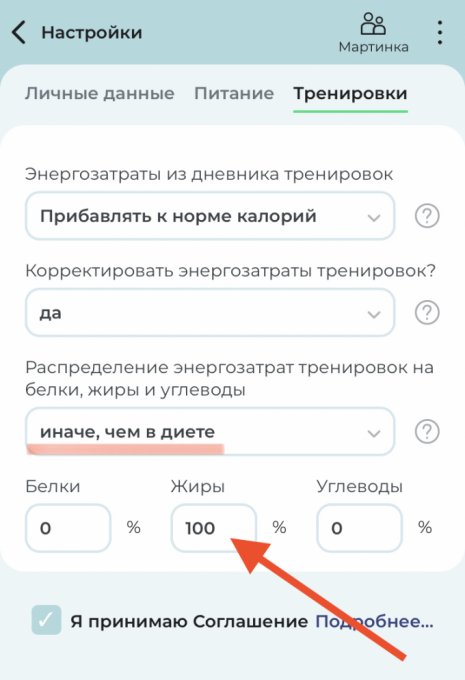А энергозатраты на тренировках тоже лучше жирами пополнять. В настройках выставляется так: