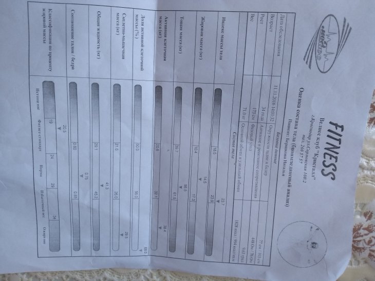 У меня она выросла на 4,6 кг; в жире потеряла 12,5 кг и это чуть-чуть больше чем за два месяца.